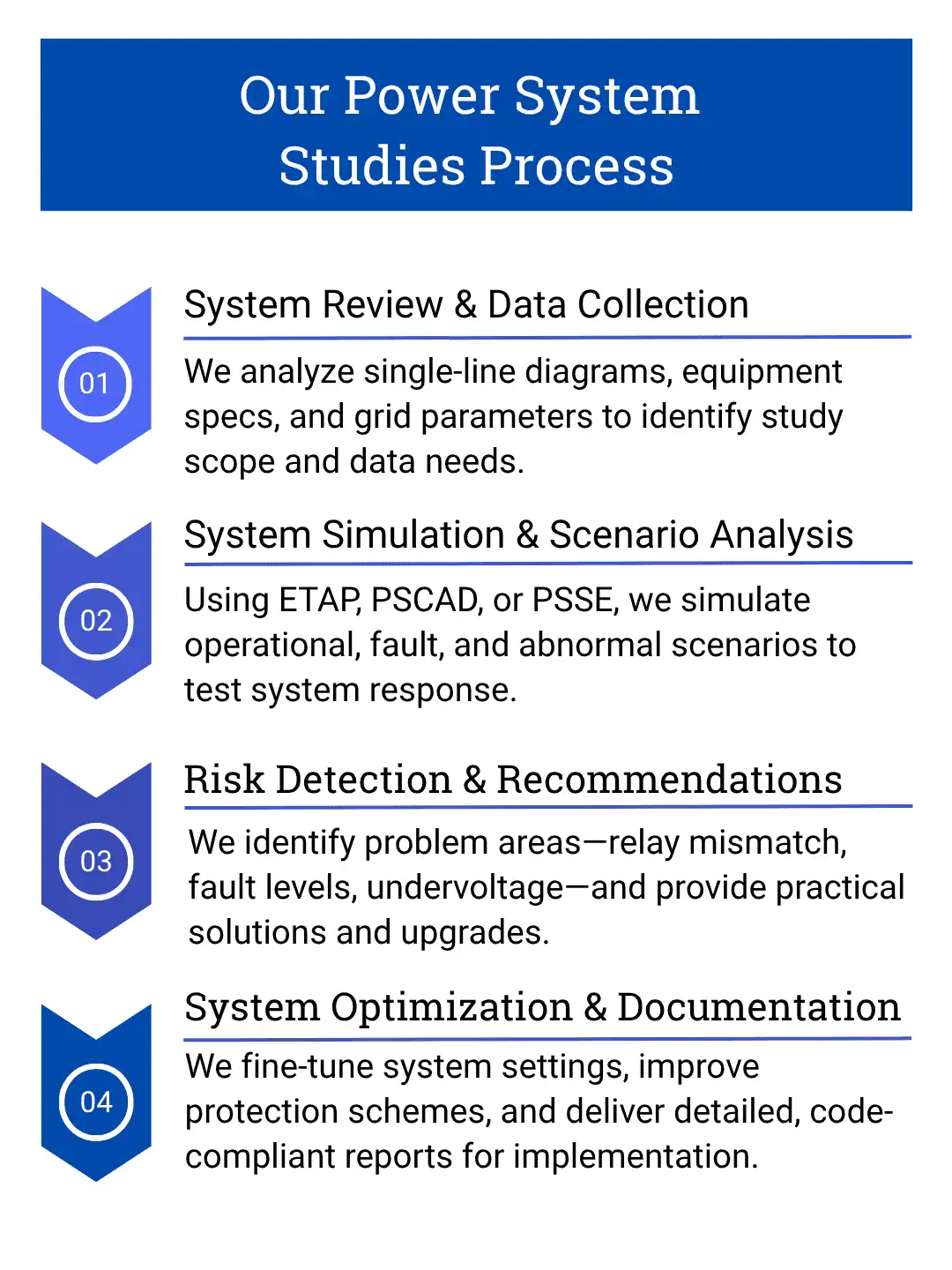 We help create strong and efficient power systems through four simple steps.